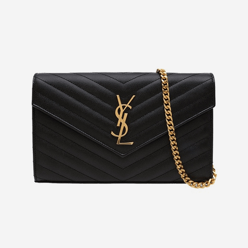 Yves SaintLaurentYsL圣罗兰杨树林女包 Monogram信封woc黑色鱼子酱链条包单肩斜挎包 金扣金链中号22.5*14*4现货